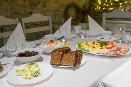 The venue for a repast is one of the most important decisions to make. Because it is typically held after a funeral or wake, you’ll want to consider a location that is near or convenient to that of the service. A church or other house of worship may have facilities that can accommodate your needs. Similarly, a funeral home may have a banquet hall or other room for hosting your gathering that may be available to you as part of a package for funeral and burial services. Some people choose to have a repast at their home or at a restaurant. An outdoor venue such as a park may also be a good choice depending on the time of year and the weather.