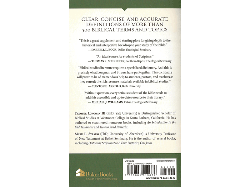 The Baker Compact Dictionary of Biblical Studies is a collection of all the scholarly and Biblical terms you could ever need to know as you read the Bible.