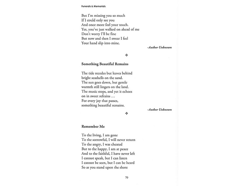 More specifically, the Baker Funeral Handbook contains: