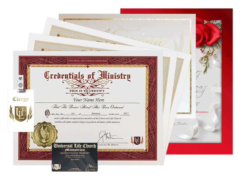 We've also included two versions of the blank ULC Certificates of Marriage so you can provide the couple with a beautiful document to be framed and kept as a special reminder of their wedding day.