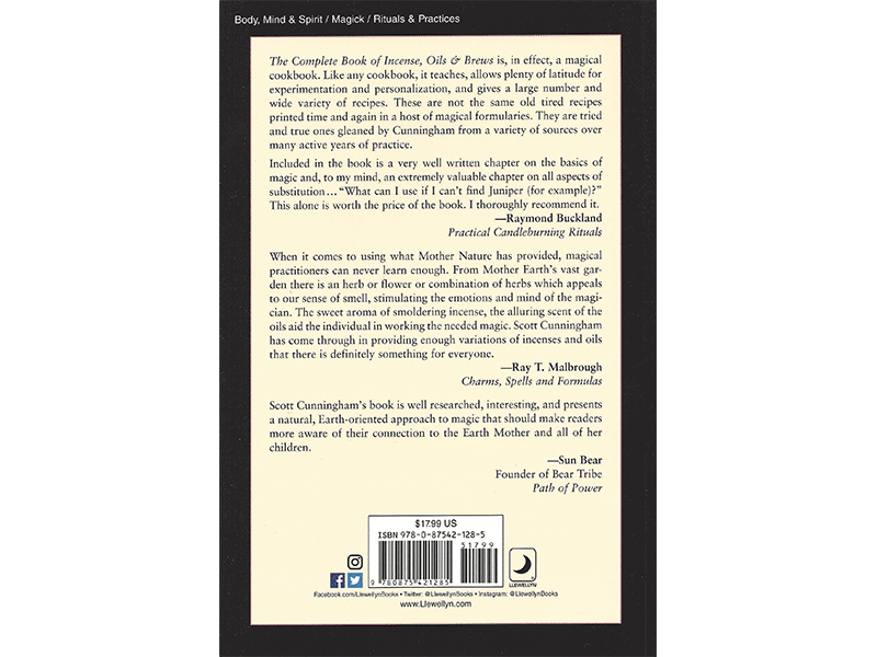 Complete Book of Incense, Oils & Brews is a wonderful guide written by world famous herbalist Scott Cunningham to help practitioners unlock the use of herbs to enrich lives. This book includes a wide variety of tried and true recipes, and can be thought of as a cookbook of sorts. It includes instructions on making incense, oils, and brews unlocking ancient secrets for all to use.
