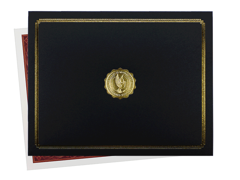 Our protective Certificate holder has a gold-embossed border and the logo of the Universal Life Church. It is cut to hold any title or certificate in our store.