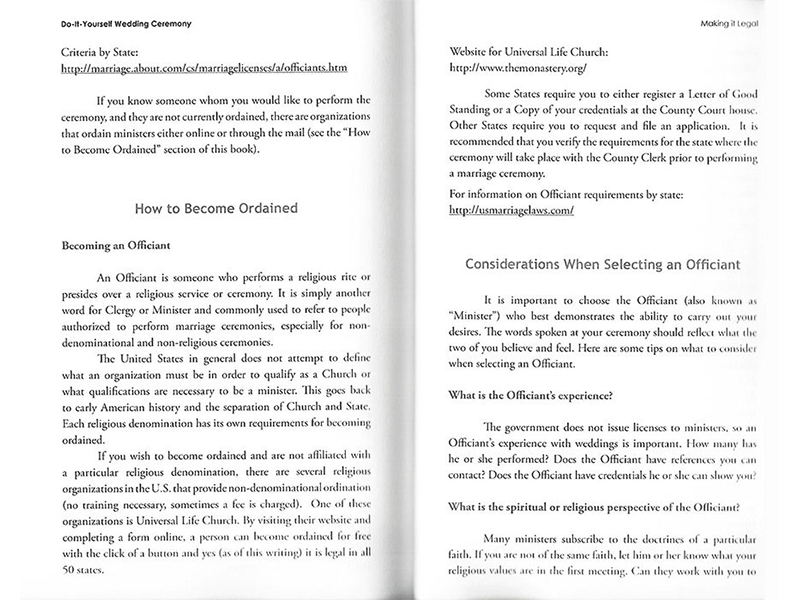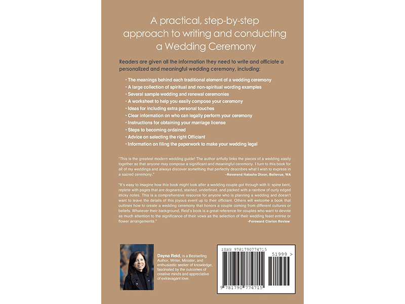 Dayna Reid has created a wonderful source of information for both couplesand and officiants embarking on their marriage journey. If you're looking for a detailed tool that acts as a guide through the customization of any ceremony this book is for you.