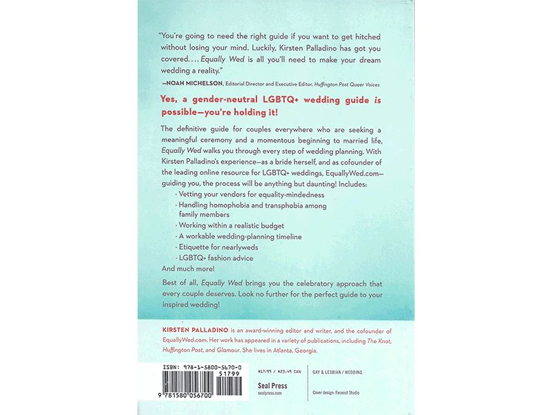 Now their online magazine is a definitive guide book for same-sex and gender neutral wedding planning. Thanks to Palladino's decade of experience in wedding planning, readers will have a step-by-step instruction guide to help you manage both the costs and stresses that come with planning a wedding. In this book, you will find tools and tips you need to incorporate wedding transitions into your ceremony, keep up with LGBTQ+ wedding trends, and how to deal with homophobia and transphobia from family members. Whether you are a couple planning your upcoming wedding or a minister wanting to perform meaningful and personal same-sex wedding ceremonies, Equally Wed is the guide for you.