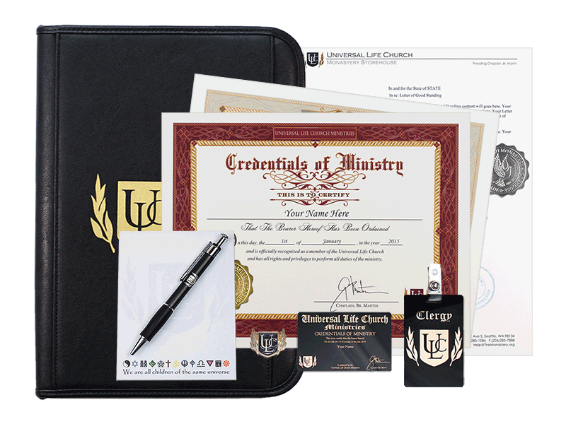 Included with the portfolio are the essential minister credentials and a collection of useful minister accessories.