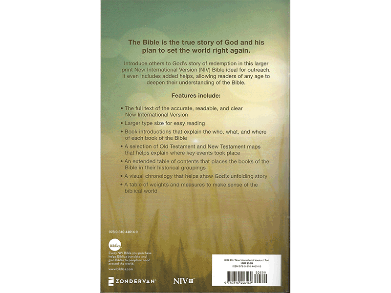 This New International Version Holy Bible is an over 1,000 page paperback copy that comes with large print for ease of reading. Because of this, we specifically recommend this Bible if you read your Bible multiple times per day, want to markup your Bible, or would like to dog-ear it. In addition to the normal contents of the Bible, this New International Version contains introductions explaining each book of the Bible, a selection of Old Testament and New Testament maps, a visual depiction of the story of the Bible, and a table of weights and measures.