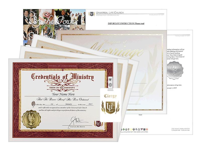 Nevada has specific registration requirements for ministers, and this bundle will come with all the necessary paperwork to register there. All portions required to be filled out by the ULC will arrive pre-filled, and the included instruction sheet will help guide you through the rest of the process. All you'll need to do after completing the application is sign the verification page with a Notary present and mail in the documents along with your $25 application fee (check or money order).