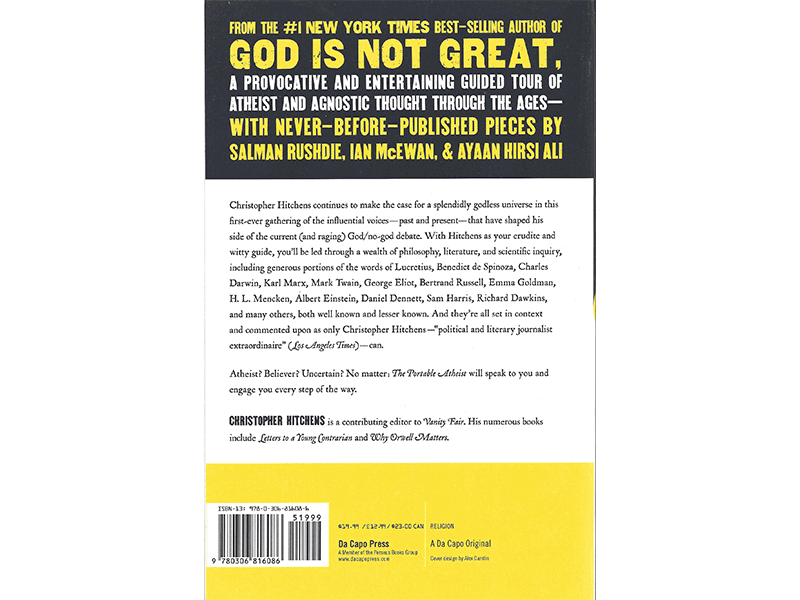 The Portable Atheist provides a collection of essential readings for non-believers and those questioning religious thought throughout the ages. Writings of many famous and influential people are gathered here for easy reference along with commentary and context provided by literary and political journalist Christopher Hitchens.