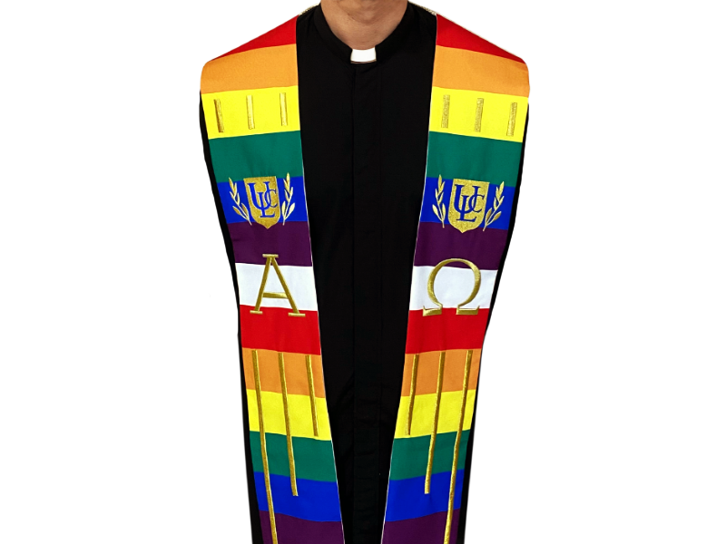 The ULC rainbow stole is the perfect garment for the minister that wants to add some color to their wardrobe.