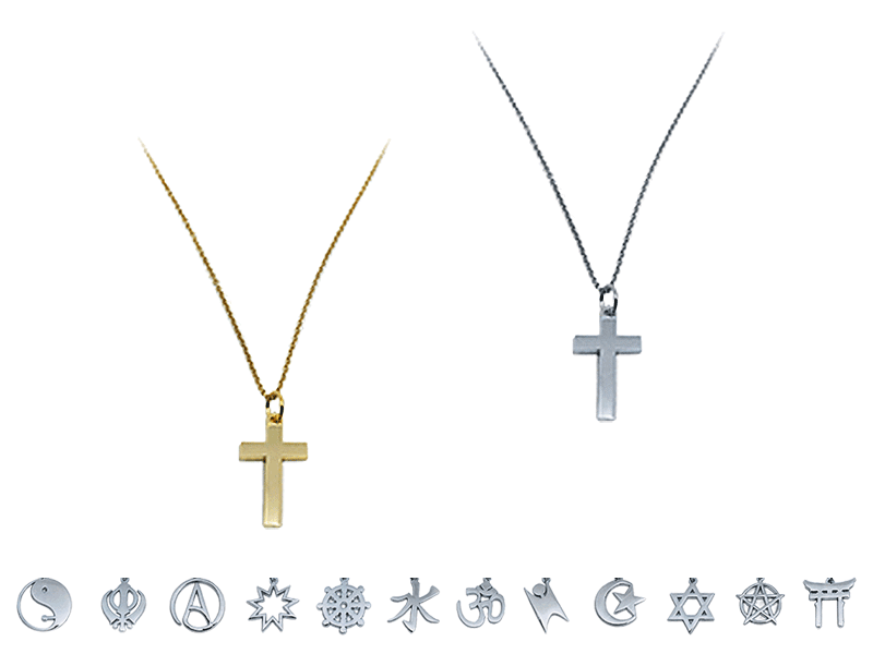The Religious Symbols necklace is a wonderful accessory for any occasion, big or small, with 13 different symbols to choose from in either gold or silver color.